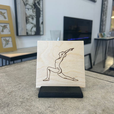 The serene elegance of this laser-engraved Baltic Birch tile showcases a beautifully simple asana from the revered Sun Salutation sequence. Crafte...